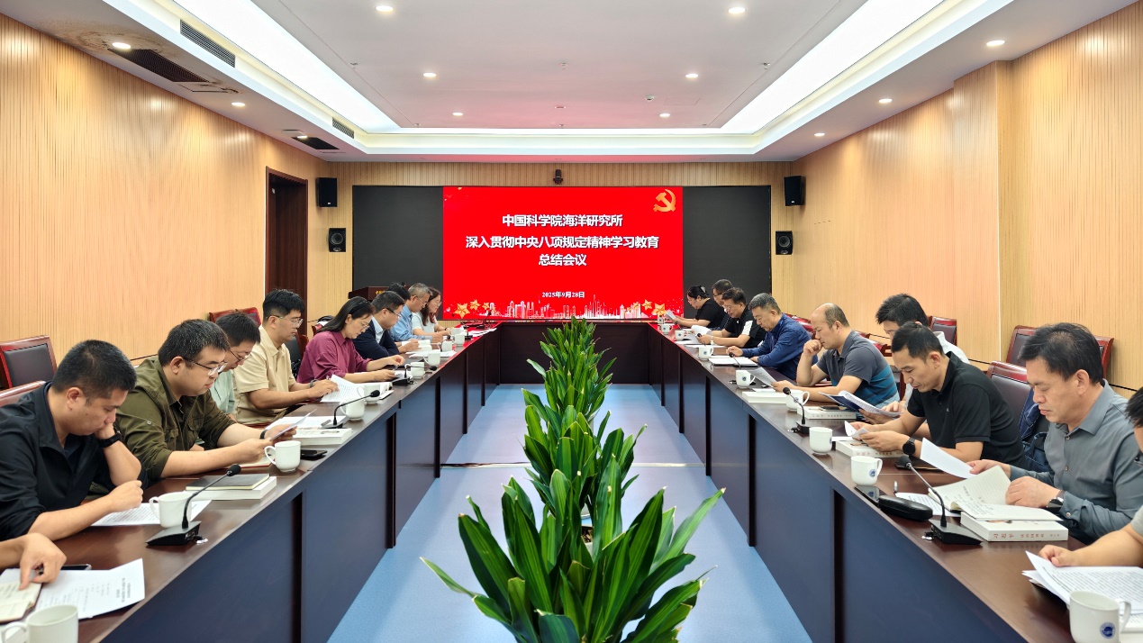 会议强调,深入贯彻中央八项规定精神学习教育是一项长期而系统的任务,全所上下要以总结评估为契机,坚持常学常新,在深化理论武装上再加压;坚持严查严改,在巩固作风建设上见实效;坚持建章立制,在构建长效机制上抓落实。要持续巩固和拓展学习教育成果,把党的作风建设要求贯穿到重点实验室建设、重大科研项目组织实施、“十五五”规划编制、深化研究所改革等重点工作中,为加快抢占海洋科技制高点、实现高水平科技自立自强提供坚强保障和有力支撑。