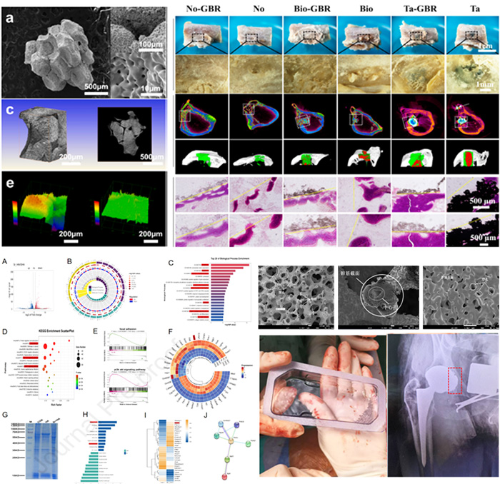 近期,该团队对多孔钽材料体系的相关成骨机理进行了深入研究,基因测序结果显示该材料体系能对机体内1829个关键基因造成显著影响,尤其可通过上调整合素α6(Itga6)的表达,激活PI3K/AKT信号通路,显著促进成骨基因(如RUNX2、ALP、OPG)的表达,最终增强成骨细胞的分化与矿化能力。相关成果发表于《Materials Today Bio》。